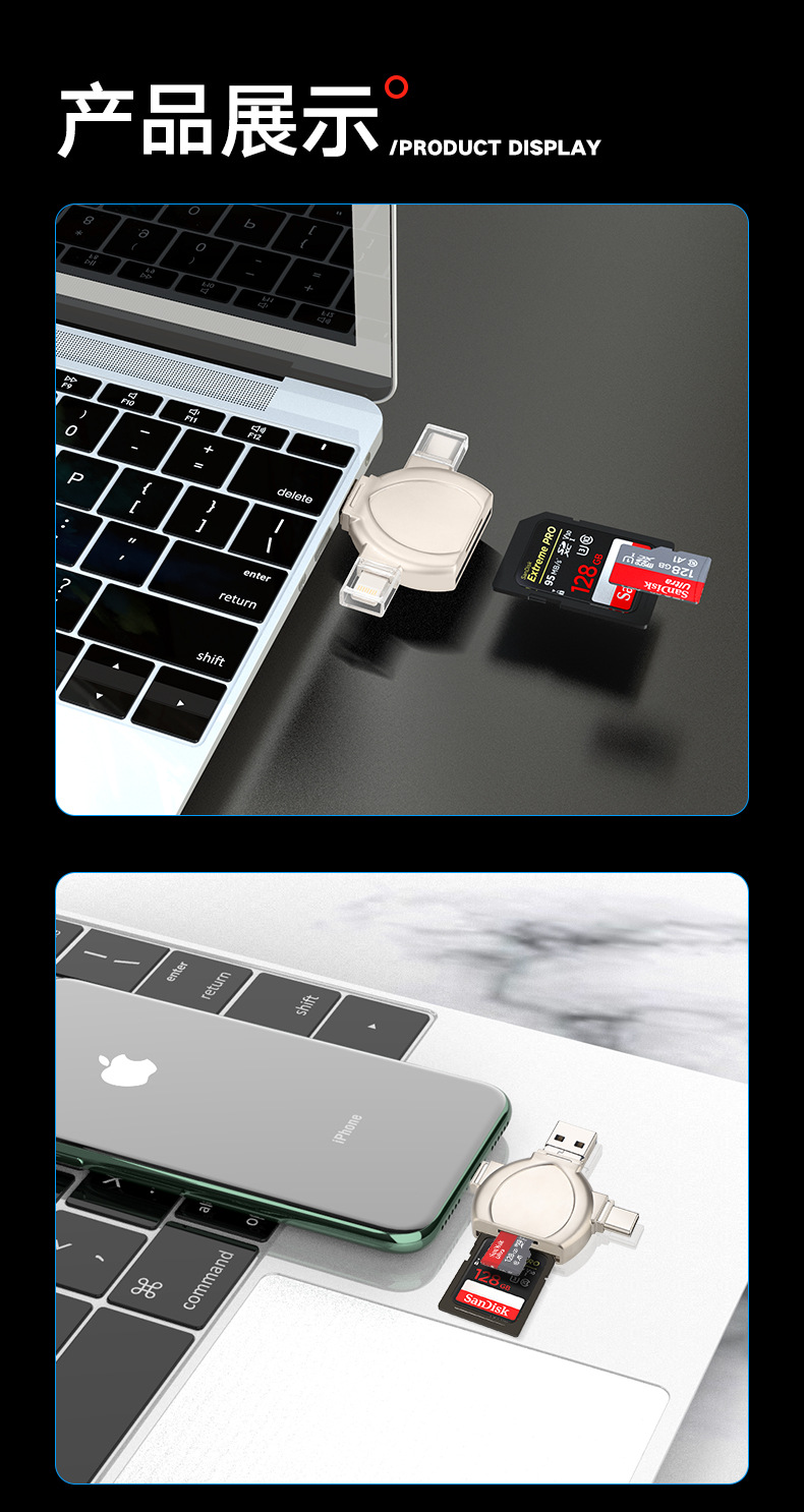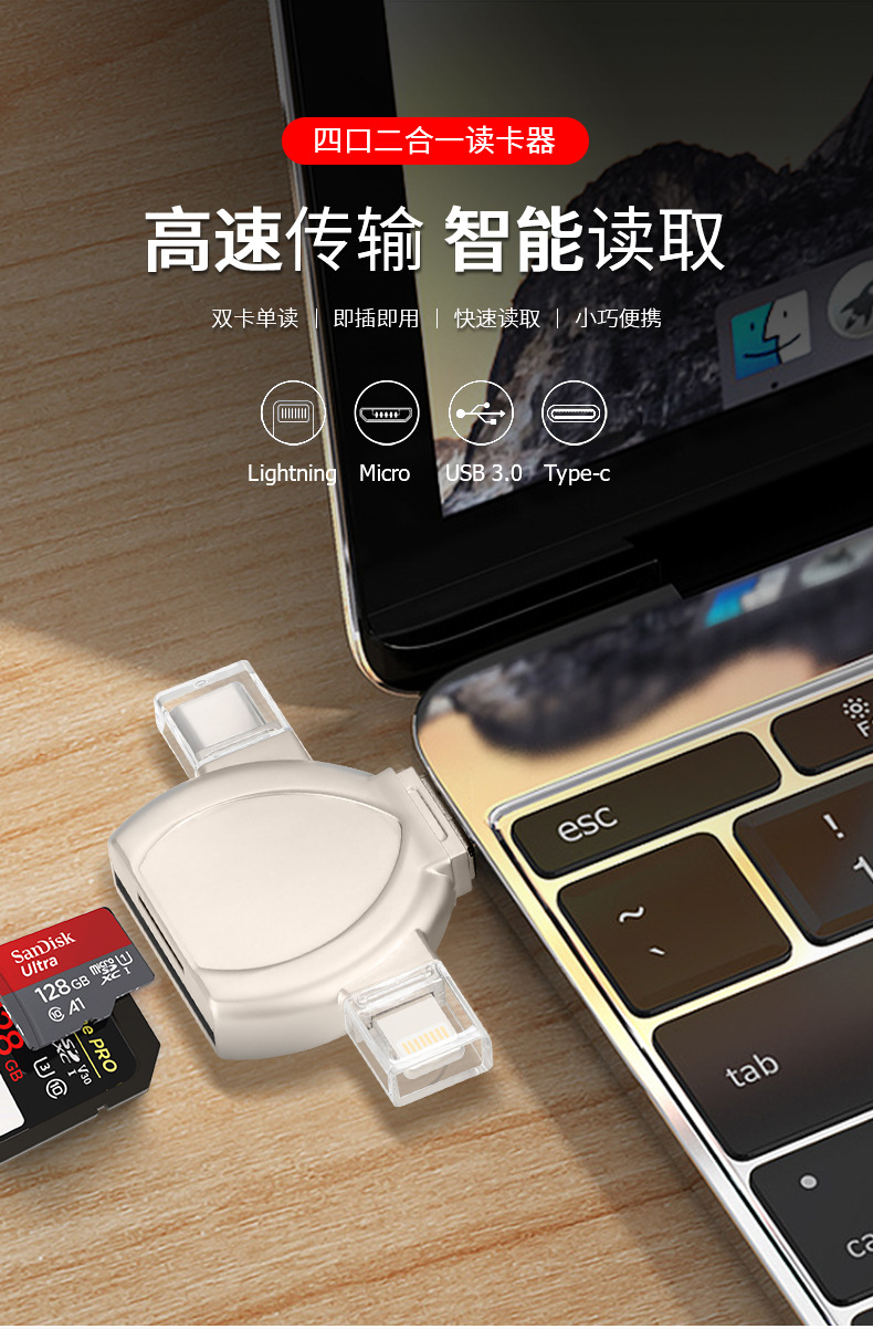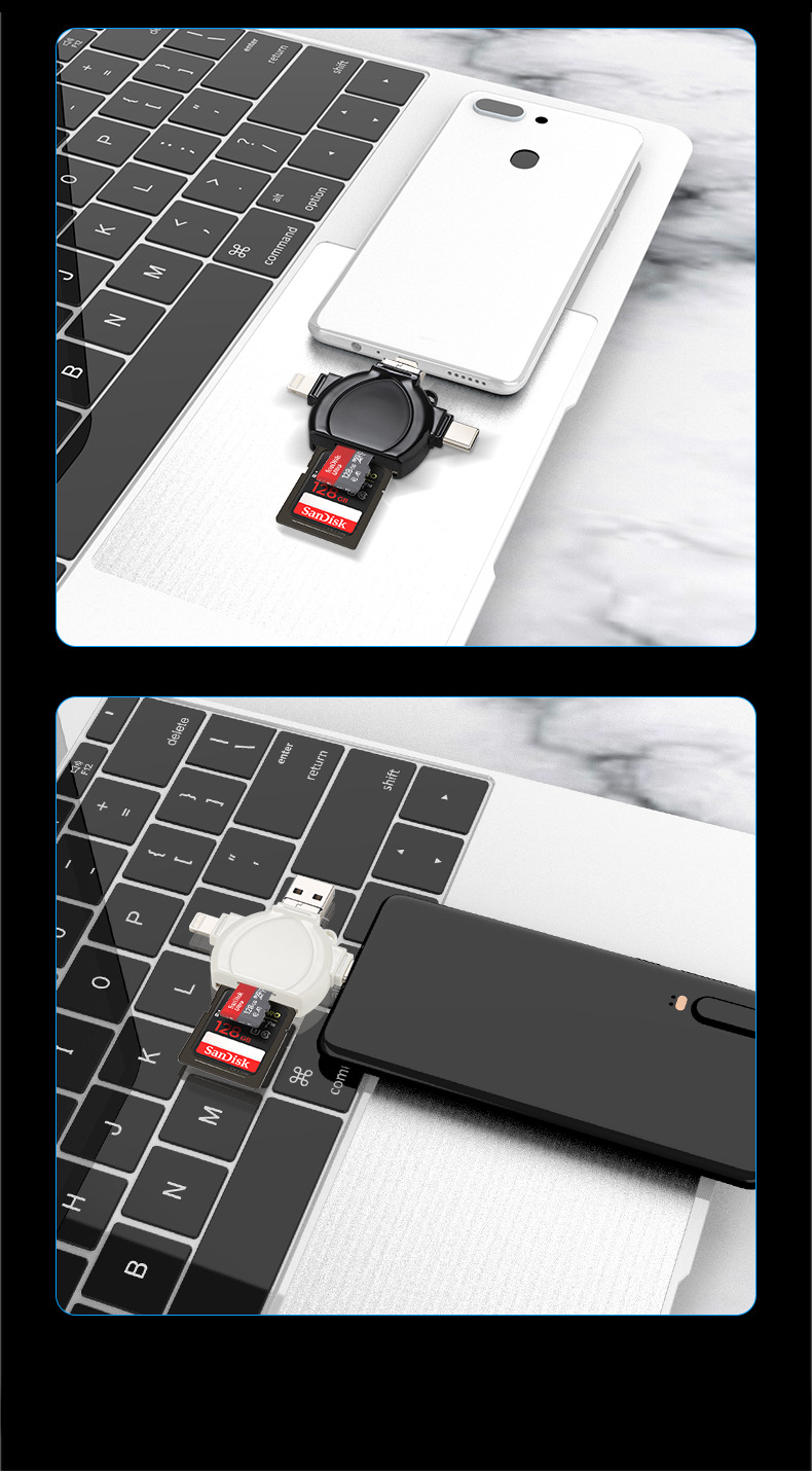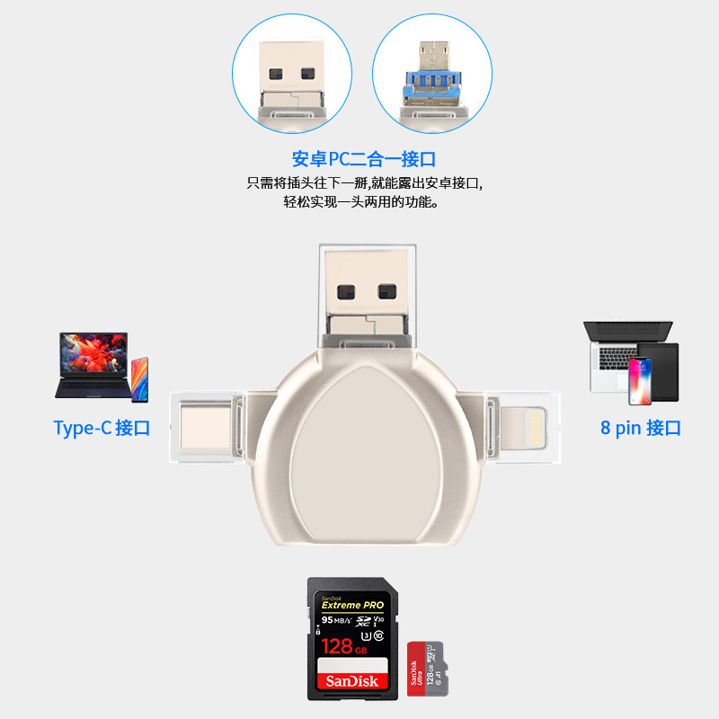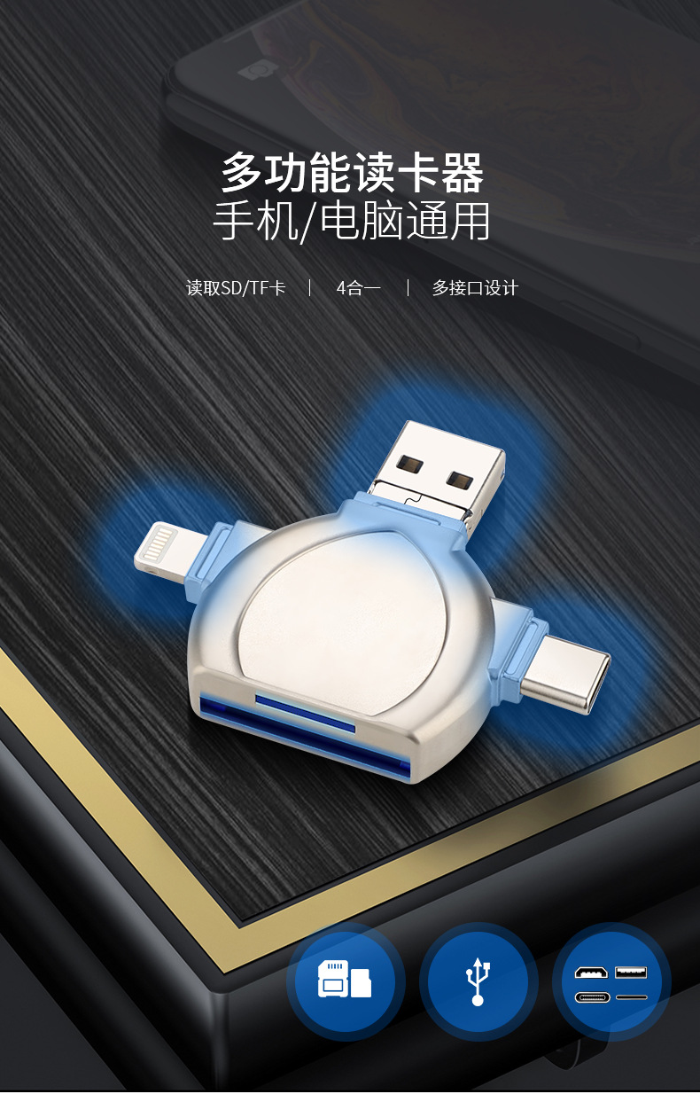 i-FlashDevice 4 in 1 Lighting/Type C/Micro/USB TF SD card reader D04 OTG