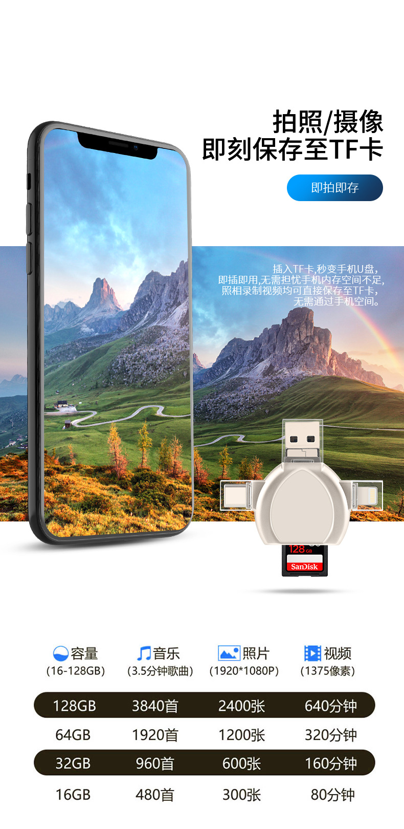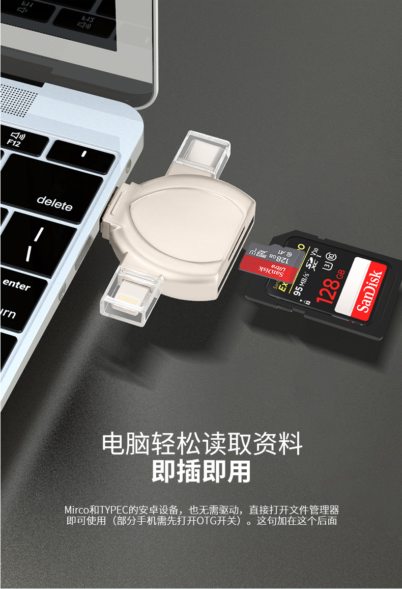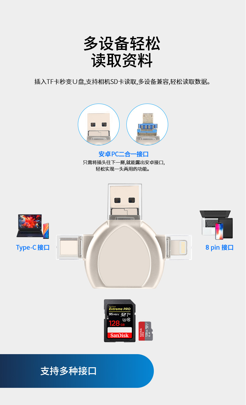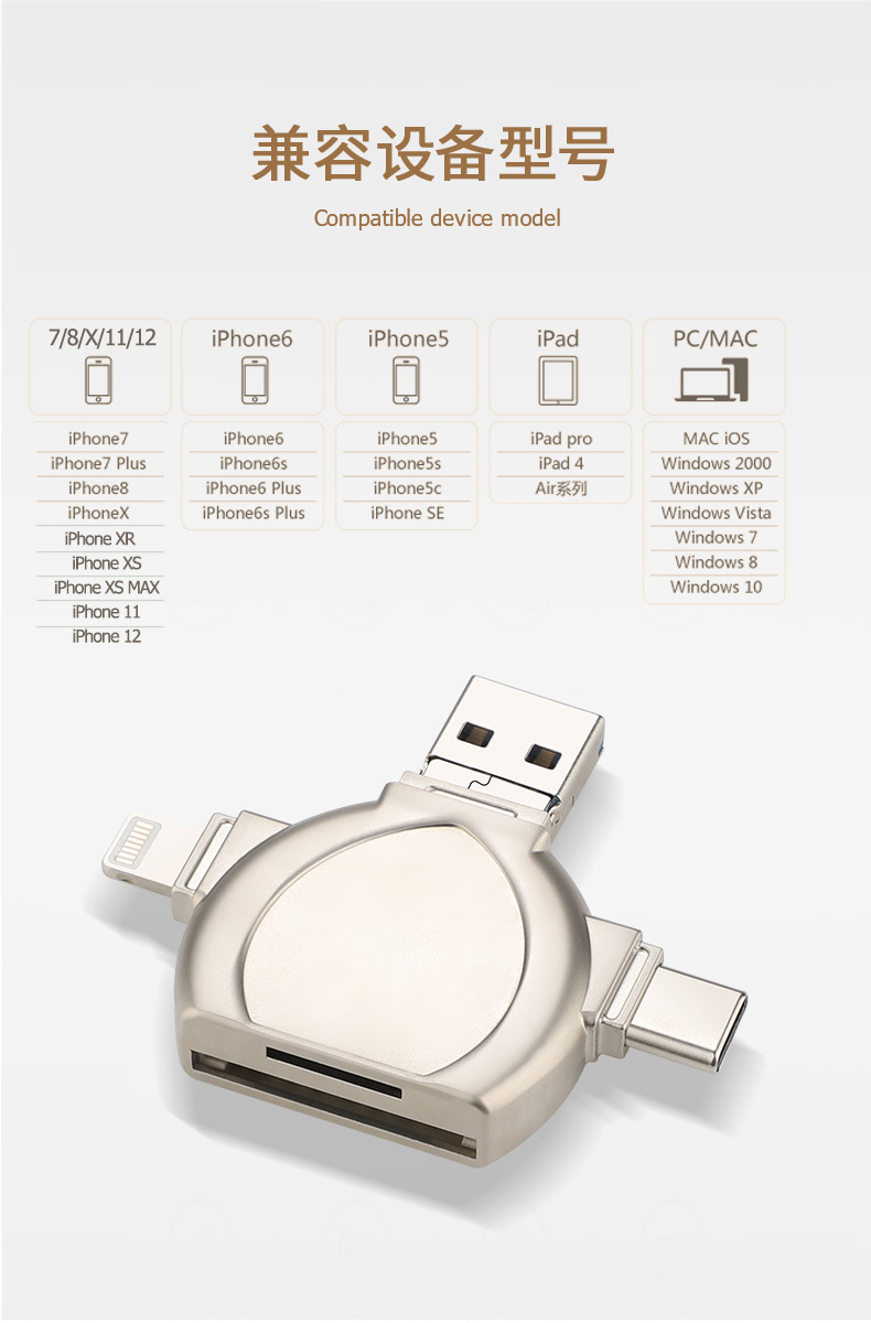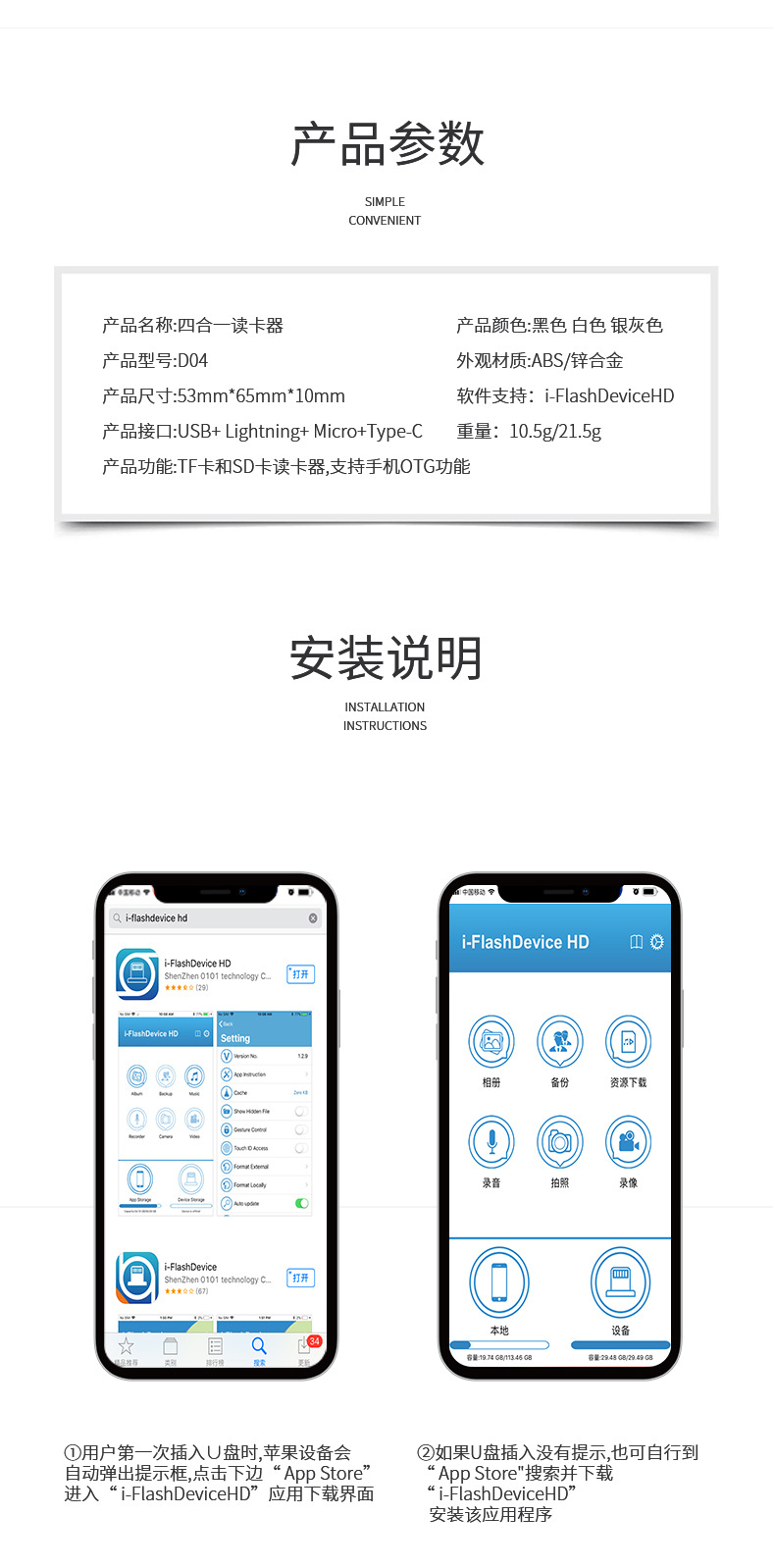 i-FlashDevice 4 in 1 Lighting/Type C/Micro/USB TF SD card reader D04 OTG