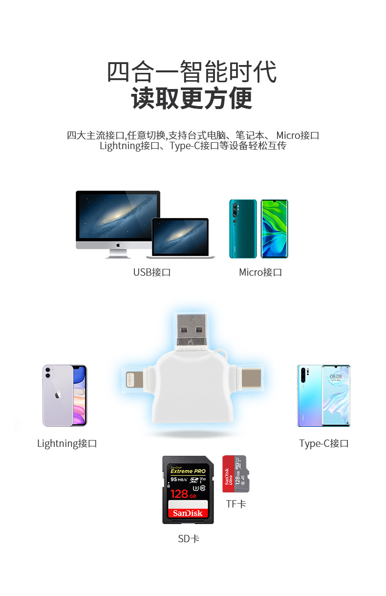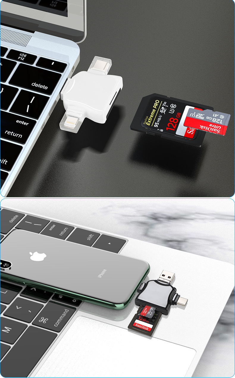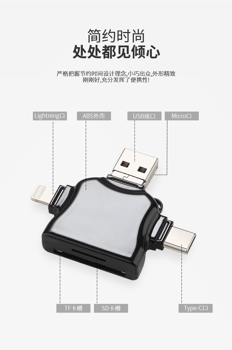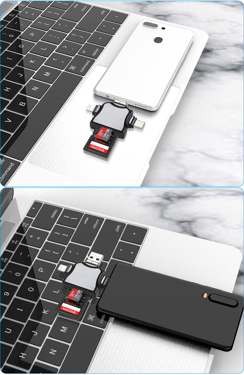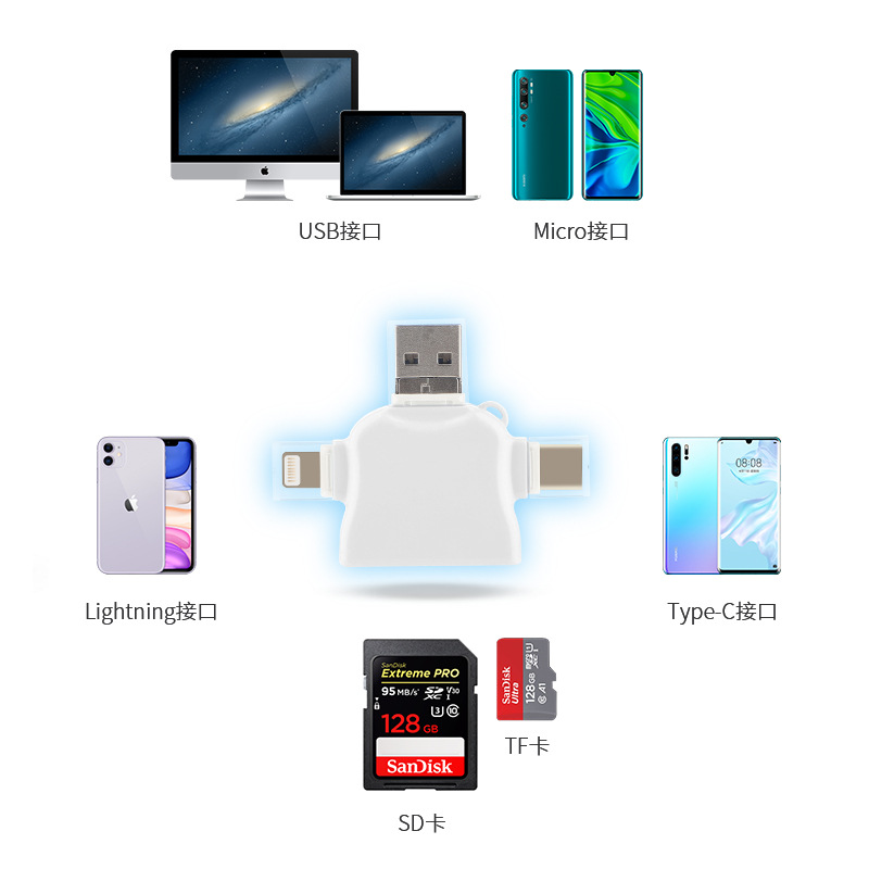 i-FlashDevice 4 in1 Lighting/Type C/Micro/USB TF SD card reader D05 OTG