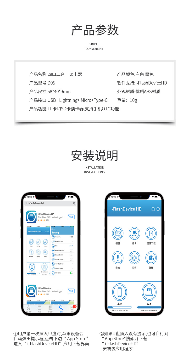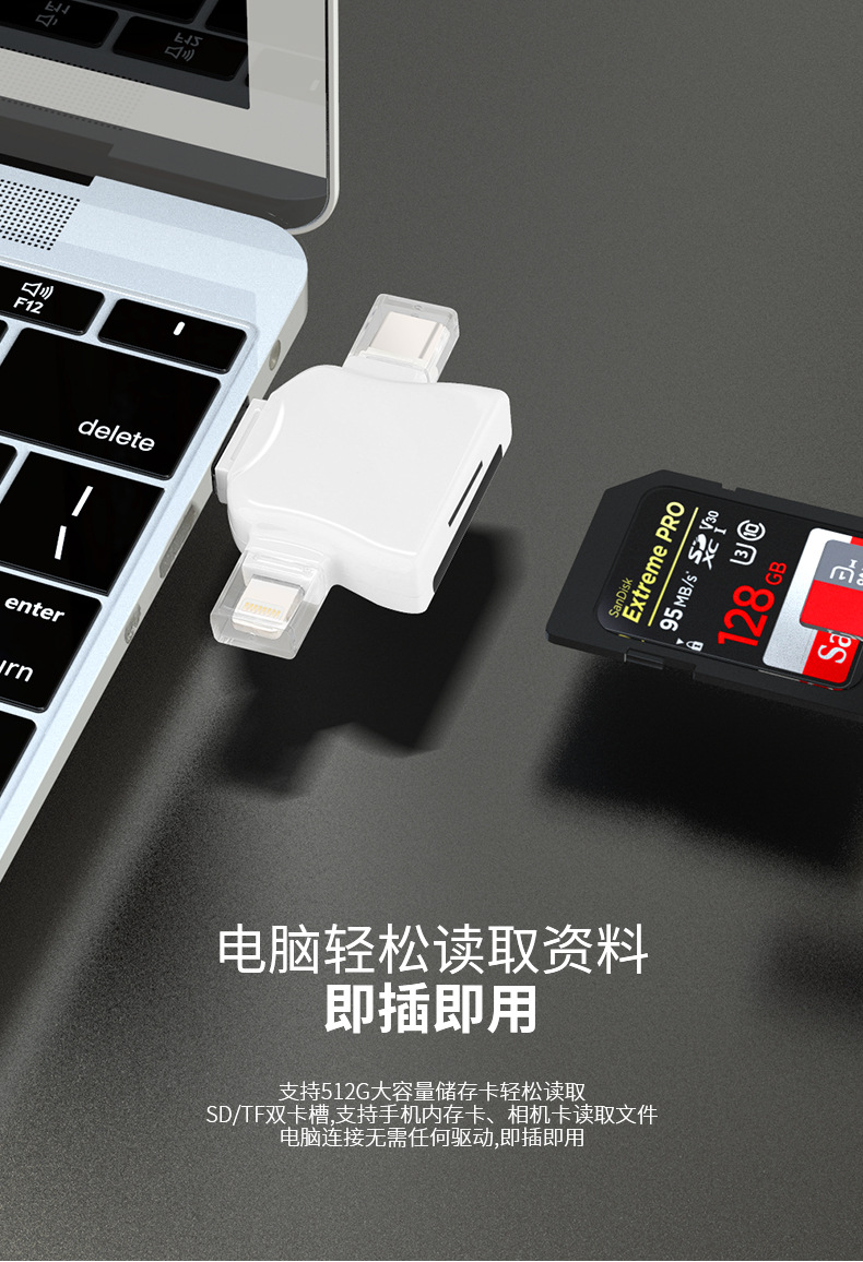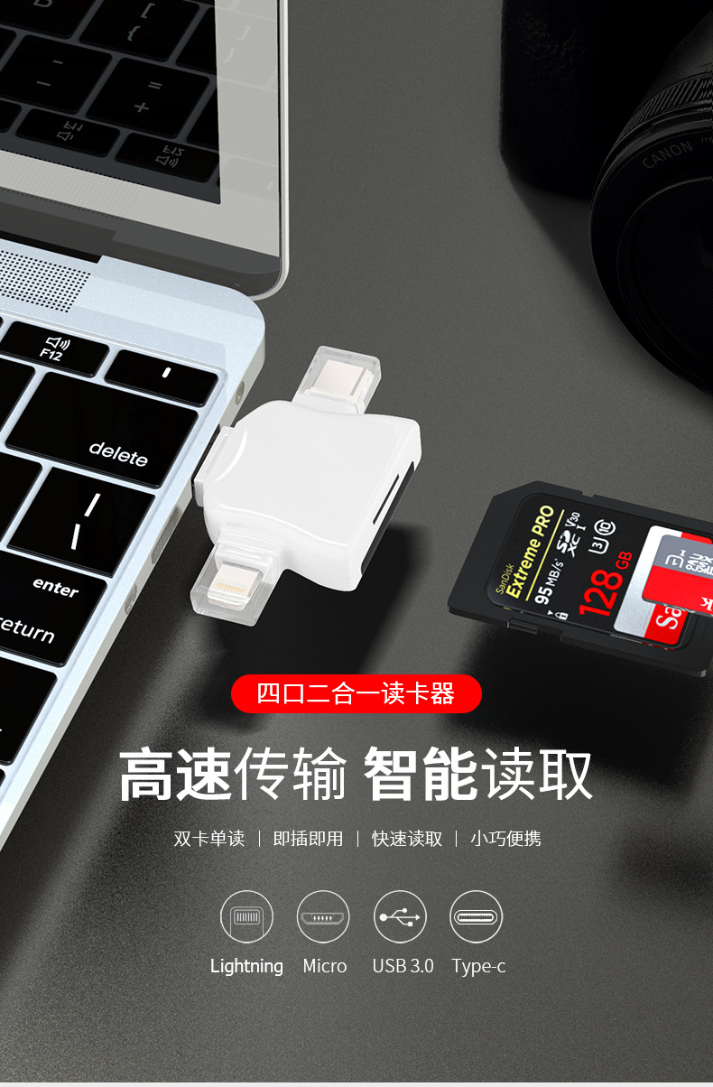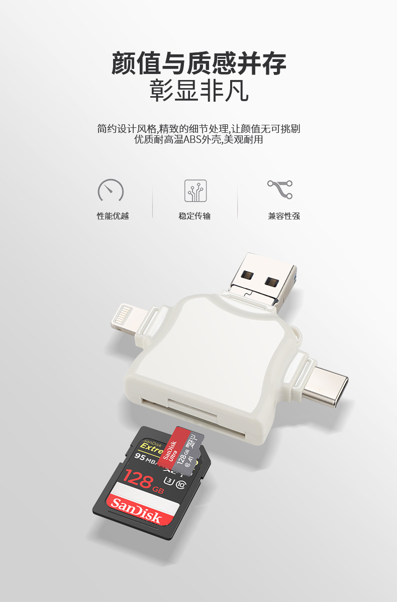 i-FlashDevice 4 in1 Lighting/Type C/Micro/USB TF SD card reader D05 OTG