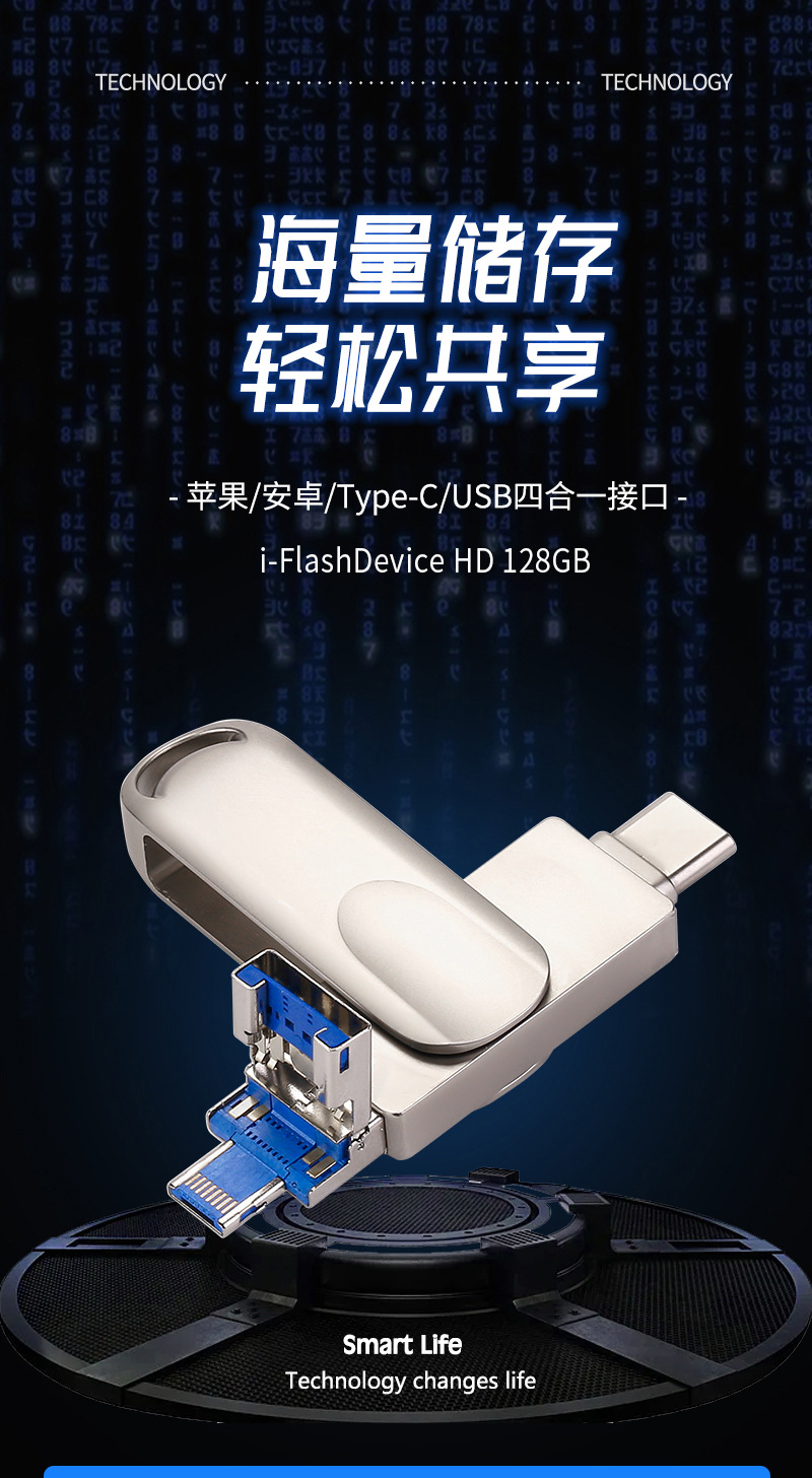 i-FlashDevice Apple/Android/Type C/USB 4 in 1 rotating metal FlashDriver