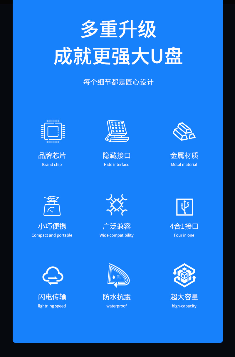 Zinc alloy metal surface, 8GB/16GB/32GB/64/128/256GB available, customization for owner logo, can make as gift & present
